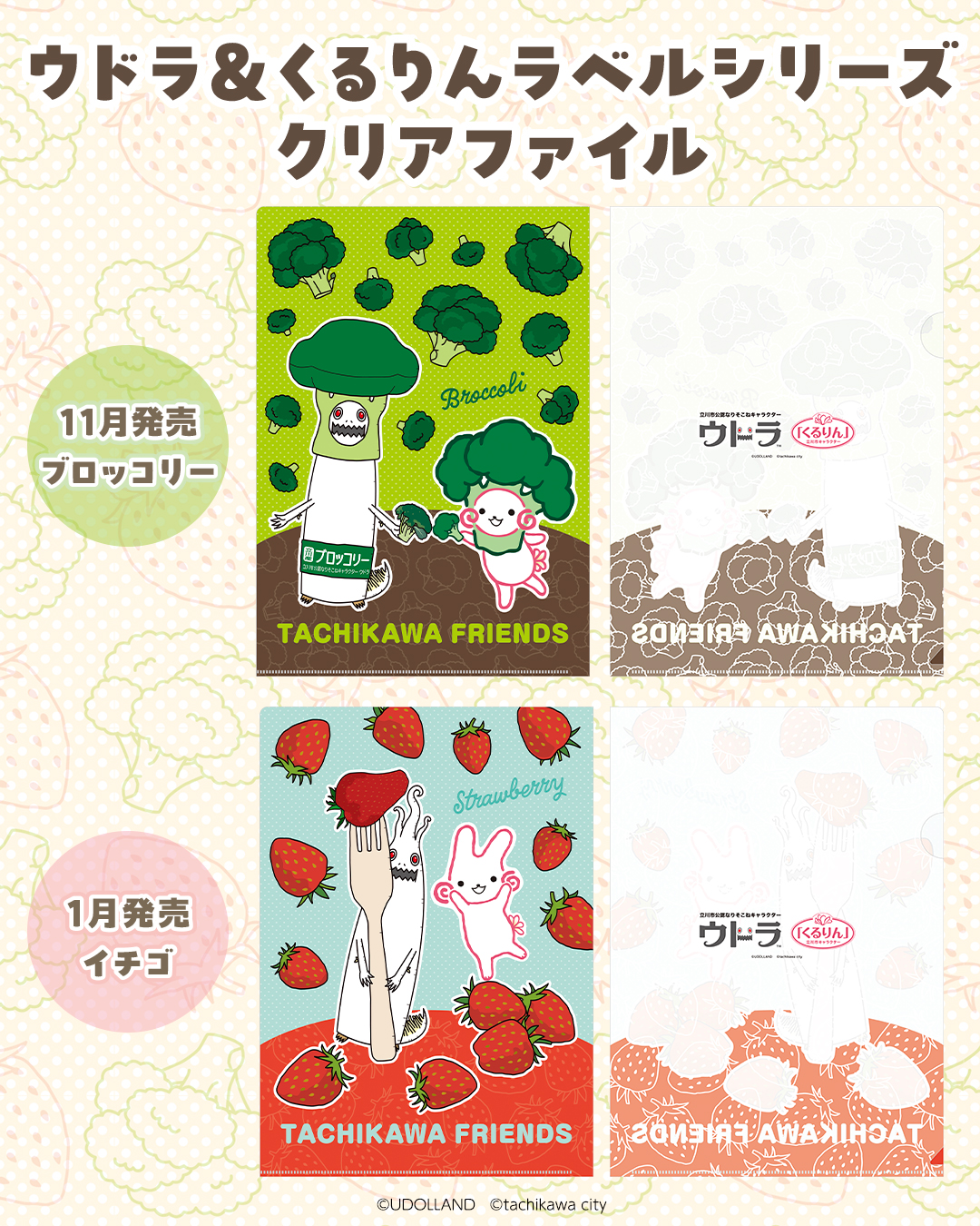 ウドラ&くるりんラベルシリーズのクリアファイルに新しい絵柄が登場。